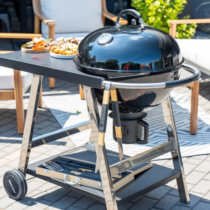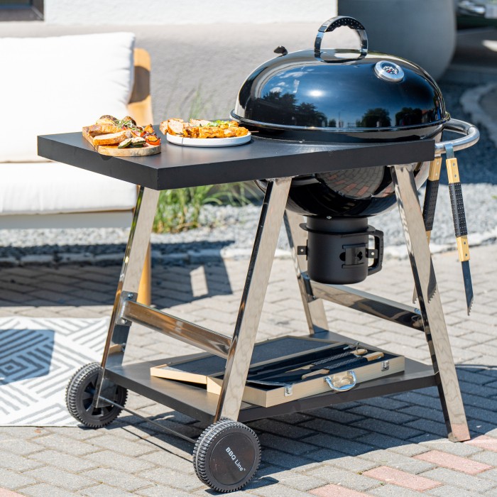 Denna kolgrill i stål ger stabilitet och komfort vid varje grilltillfälle. Utrustad med ett lock med termometer gör den det möjligt att övervaka temperaturen under grillningen. Dessutom gör det justerbara luftflödet det enkelt att anpassa grillförhållandena efter dina individuella preferenser, vilket säkerställer perfekt smak. De integrerade hjulen gör grillen enkel att flytta runt i trädgården eller på uteplatsen.